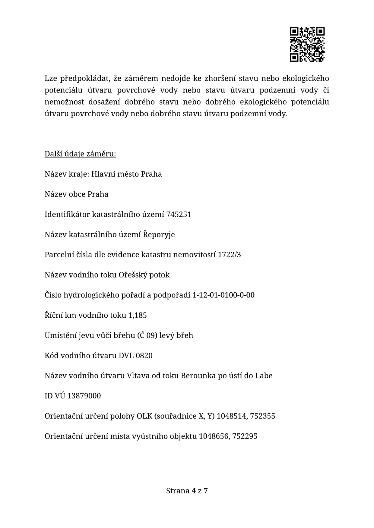 Rozhodnutí: Úřad městské části Praha 13 **vydává souhlasné jednotné environmentální stanovisko** pro záměr **VRTANÁ TRUBNÍ STUDNA** na pozemku **parc. č. 154/61** v **k.ú. Stodůlky**. Záměr je z hlediska vlivů na všechny dotčené složky životního prostředí **přípustný**.
